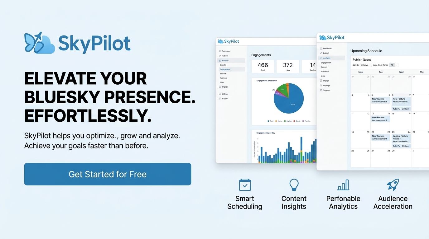 Schedule to Bluesky, grow with deep analytics, find friends, and analyze audiences in one place.