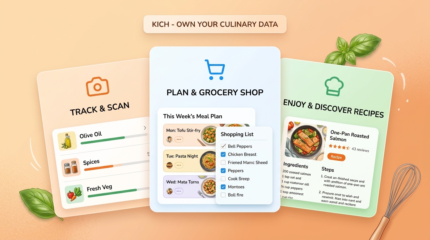 From pantry to plate — Kich handles the tracking, planning, and cooking so you can focus on the food.
