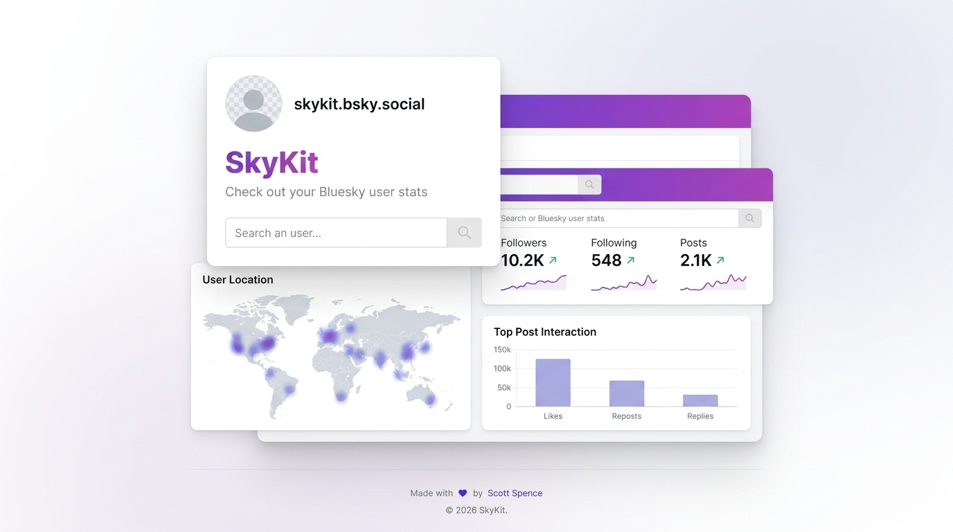 SkyKit is a tool that provides statistics and analytics for Bluesky users. It allows you to view detailed metrics about your Bluesky account activity and engagement.